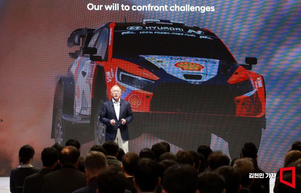 정의선 현대차그룹 회장이 지난 1월 6일 경기 고양시 현대모터스튜디오에서 열린 '2025 현대차그룹 신년회'에서 신년사를 하고 있다. 김현민 기자