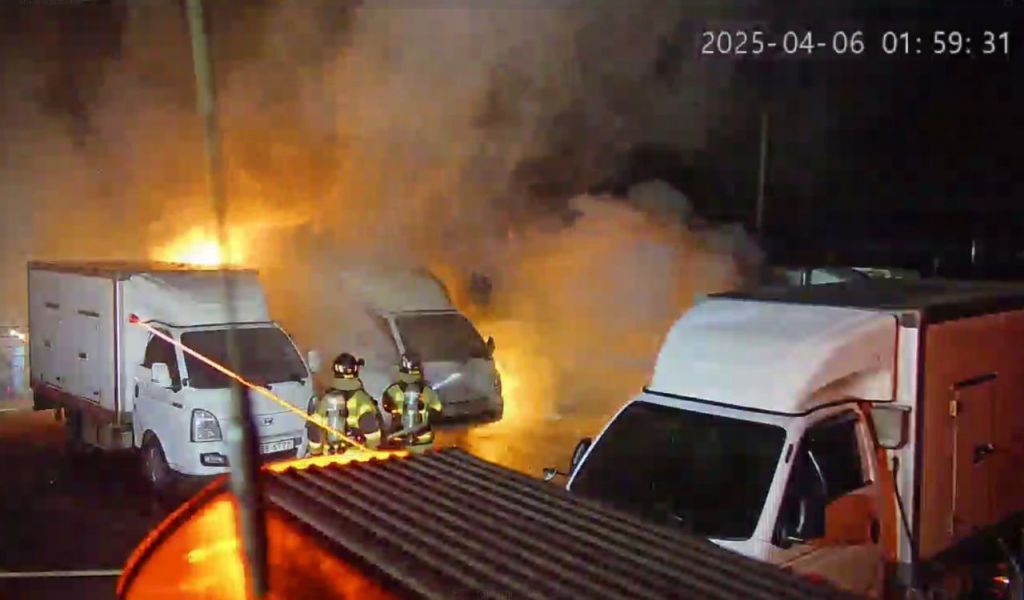 또 인근에 있던 냉동탑차 3대 역시 차량 측면 일부가 녹는 등 열 피해를 입었다. 다행히 인명 피해는 없는 것으로 확인됐다.