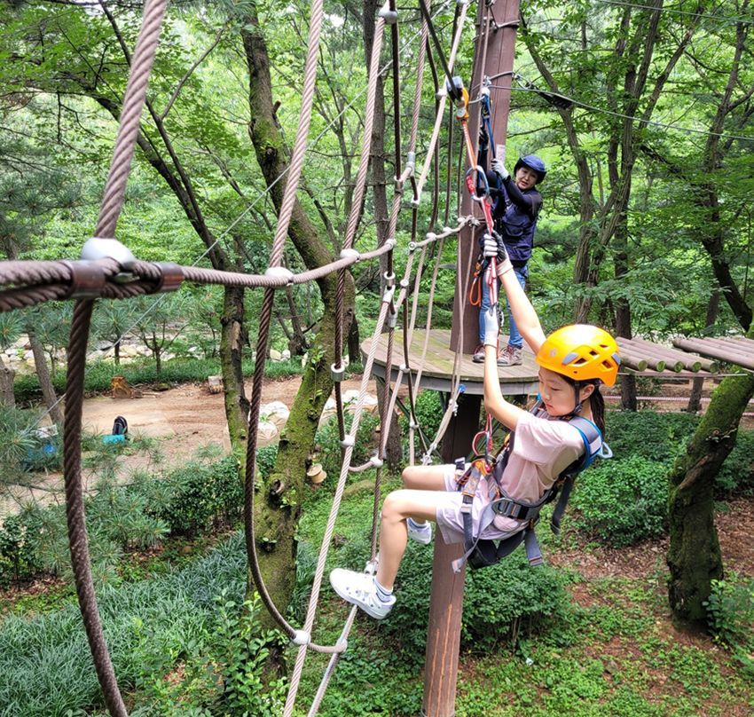 ‘관악산 모험숲’은 아이부터 어른까지 스릴을 즐기며 모험심을 기를 수 있는 이색 숲 체험이다. 총 21개의 코스로 구성된 트리 어드벤처 시설은 와이어와 로프를 타고 나무 위를 건너는 짜릿한 경험을 선사한다.