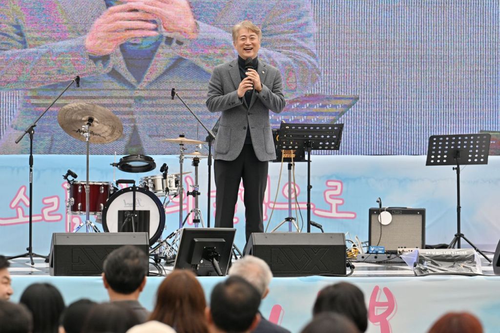 광주 서구 주민들이 5일 서구 광주천변 일원에서 ‘봄을 여는 소리, 희망의 울림으로’ 주제로 열린 힐링음악회 ‘새봄’에서 싱어게인2 우승자 김기태, 클래트릭 심포니 오케스트라 등 공연을 보며 즐거운 시간을 보내고 있다. 서구는 새봄을 맞아 경제·사회적으로 힘든 시기를 버텨주고 있는 소상공인을 비롯한 서구민들을 격려하고 위로하기 위해 힐링음악회를 개최했다. 광주 서구 제공