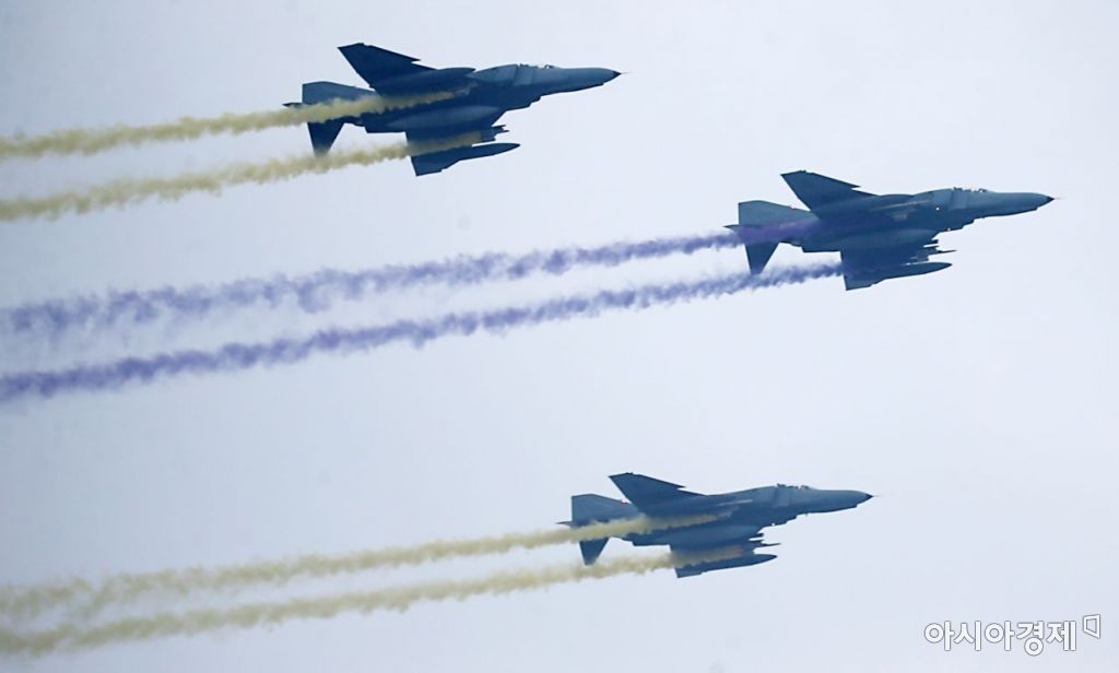 국군의 날을 맞아 대구 공군기지(제11전투비행단)에서 열린 '제71주년 국군의 날 행사'에서 F-4(팬텀)이 편대비행을 하고 있다(기사와 직접적 관련 없음)
