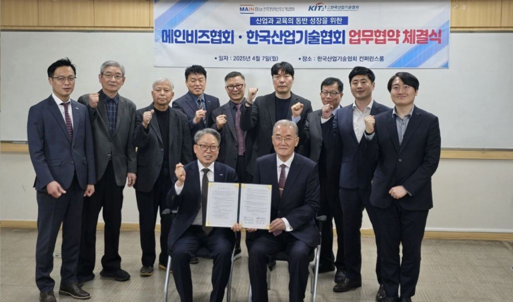 메인비즈협회는 7일 한국산업기술협회와 '중소기업 경영혁신 및 산업 기술혁신 협력을 위한 업무 협약'을 체결하였다고 밝혔다. 메인비즈협회