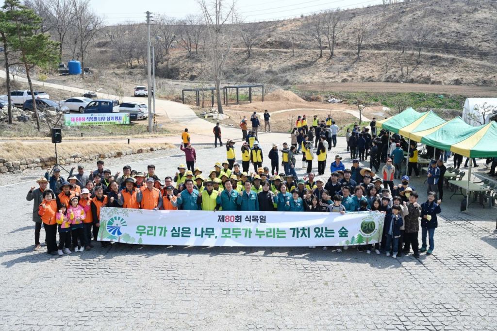 충남 홍성군은 제80회 식목일을 맞아 2023년 산불 피해가 있었던 서부면 판교리 임야에서 이용록 군수를 비롯한 공무원, 임업후계자, 산림조합원, 산악회원 등 250여명이 참석한 가운데 식목 행사를 개최했다.