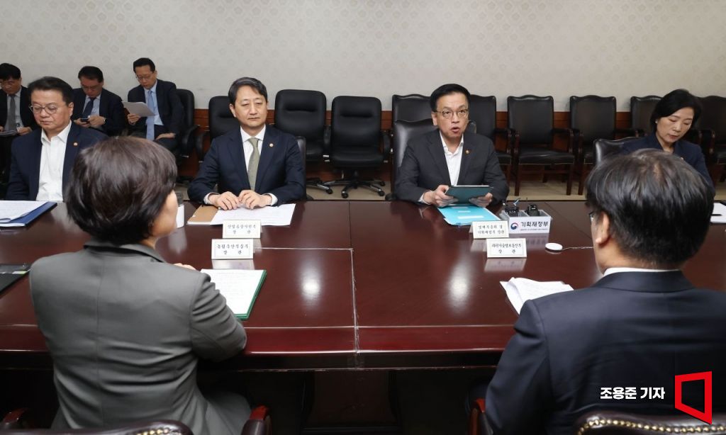 최상목 부총리 겸 기획재정부 장관이 8일 서울 종로구 정부서울청사에서 미국 관세 부과에 따른 분야별 영향 점검을 논의하기 위해 열린 경제관계장관 현안 간담회에 참석, 발언하고 있다.