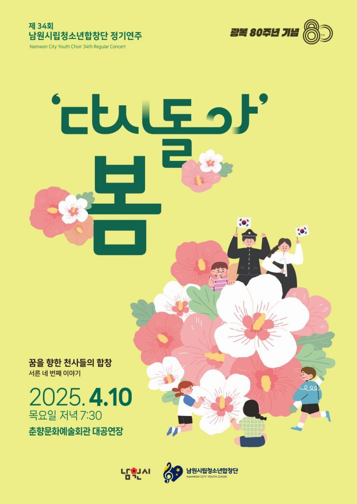 전북 남원시립청소년합창단(예술감독 김종희)은 오는 10일 오후 7시 30분 춘향문화예술회관에서 제34회 정기연주회 '다시 돌아 봄'을 개최한다고 18일 밝혔다.