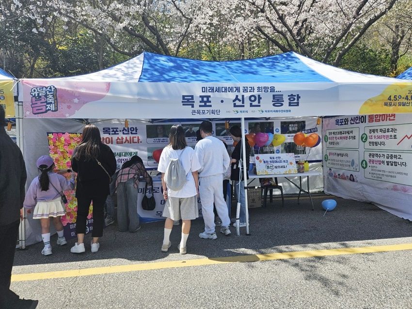 전남 목포시는 지난 유달산 봄축제 기간 목포신안통합추진위원회(위원장 고석규) 위원들과 함께 목포·신안 통합 홍보부스를 운영했다고 8일 밝혔다.