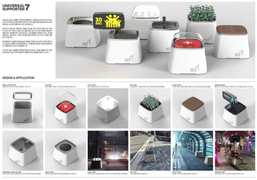 대상작인 'UNIVERSAL SUPPORTER 7'은 기본 구조를 다목적으로 활용할 수 있는 공공시설물 디자인을 제안해 높은 평가를 받았다.