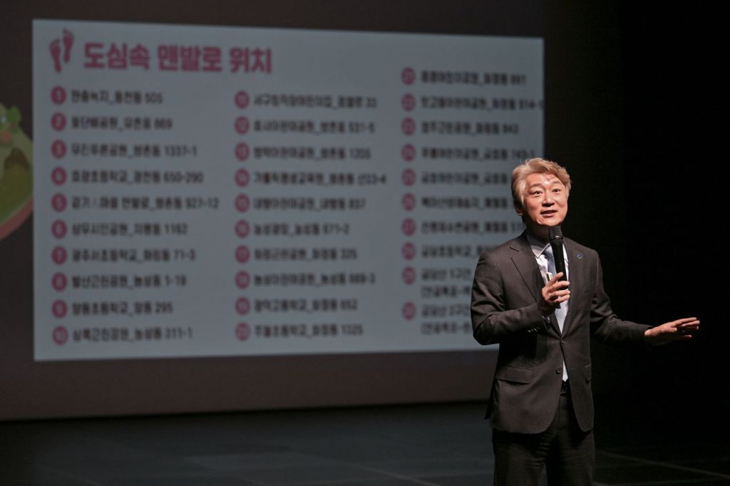 김이강 광주 서구청장이 8일 서빛마루문화예술회관에서 ‘건강백세 시대’ 주제로 노인 일자리 참여자 소양 및 활동 교육을 하고 있다. 광주 서구 제공