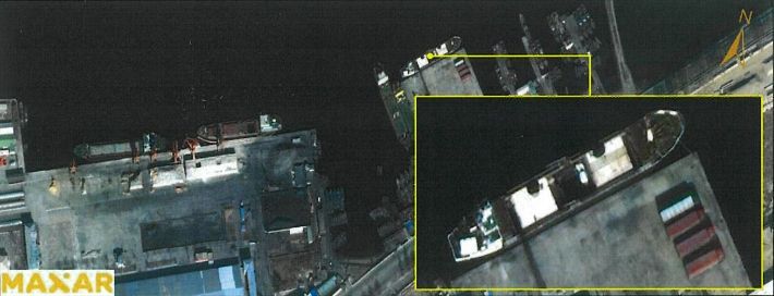 부산항에서 출항한 몽골 선적 화물선이 북한 원산항에 정박해 있는 위성 사진 모습. 부산해양경찰서