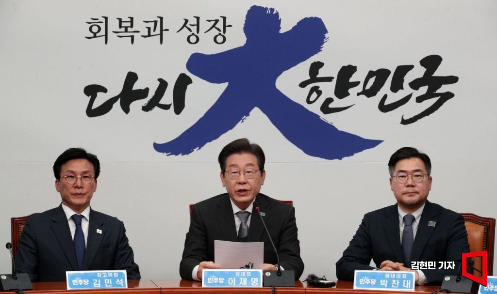 이재명 더불어민주당 대표가 지난 4일 국회에서 헌법재판소의 윤석열 대통령 파면 선고 관련 입장을 밝히고 있다. 김현민 기자