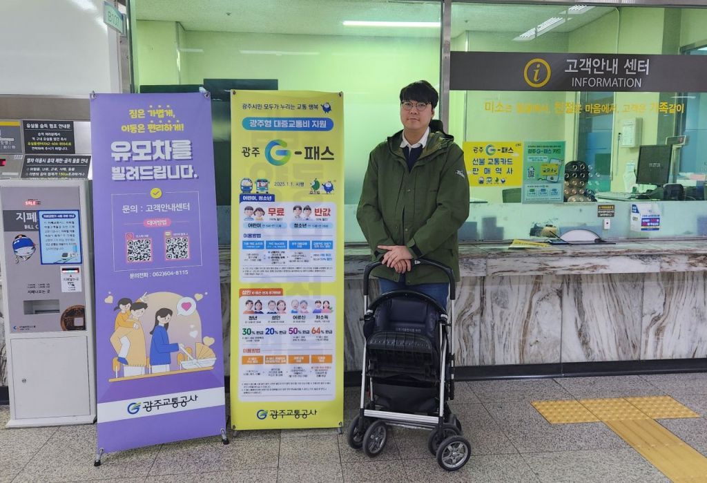 광주교통공사가 도시철도 역사 내 무료 유모차 대여 서비스를 개시, 저출산 문제 해결과 아동친화도시 구현에 앞장서 눈길을 끌고 있다.