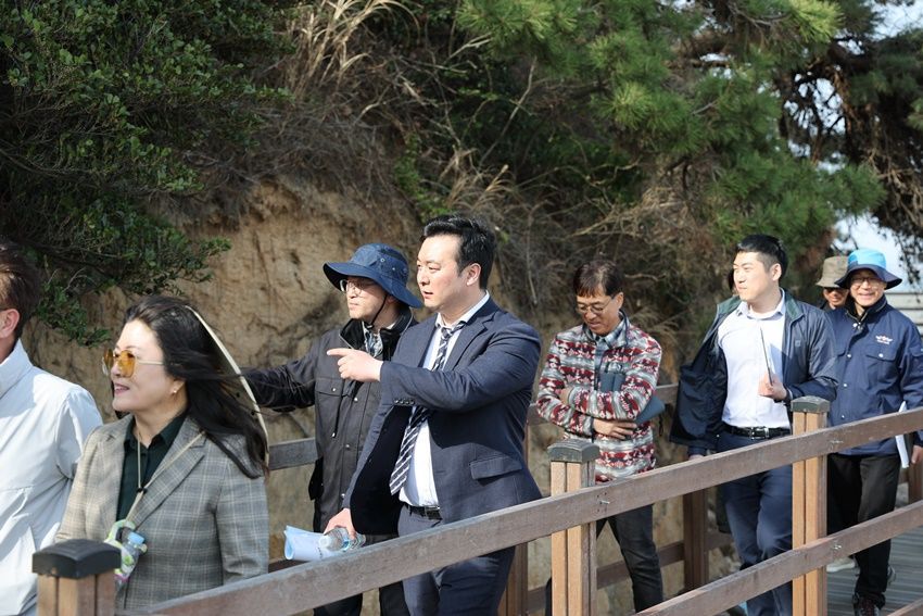 이날 의원들은 해양수산과 관계자의 현황 보고를 시작으로 선착장, 방문객센터, 숲 체험장, 탐방 데크 등 현장을 돌아보며 추진 현황을 살피고 개선 방안을 논의했다.