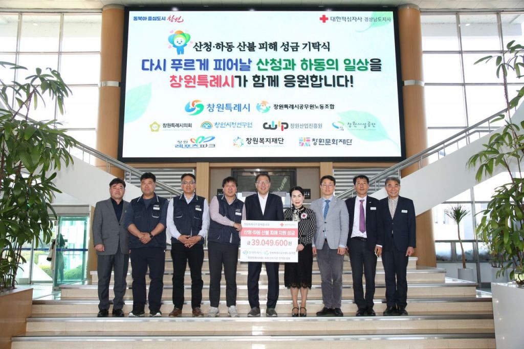 경남 창원특례시는 8일 산청·하동 지역 산불 피해 복구를 지원하기 위해 성금 3900만원을 대한적십자사에 기탁했다.