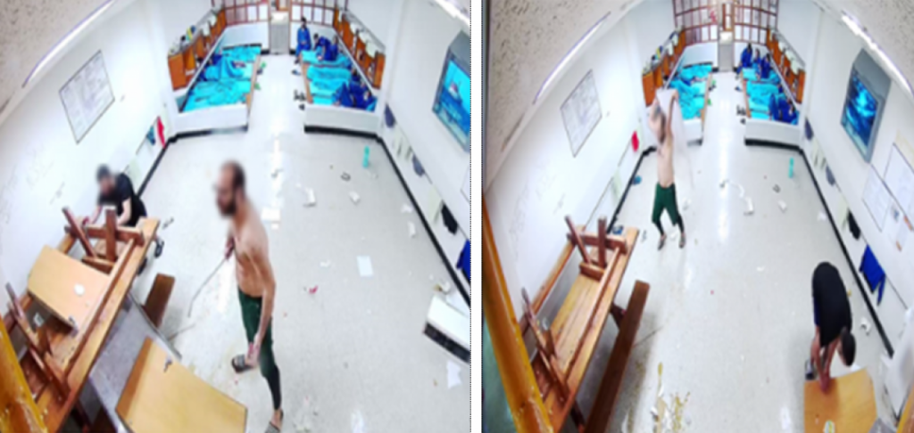 보호 외국인이 보호소 내 CCTV, 에어컨 등 기물을 파손했고, 이를 말리려고 들어온 직원의 귀를 물어 상해를 입혔다.
