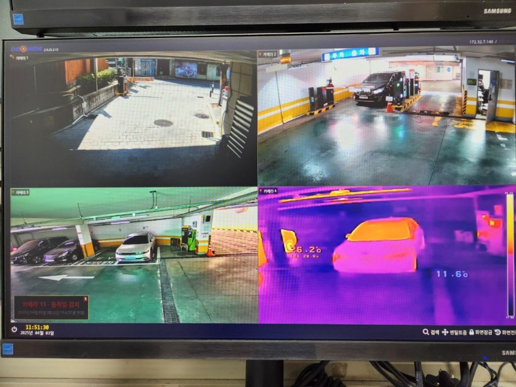 용산2가동 소월 공영주차장 열화상 카메라 표출 화면. 용산구 제공.