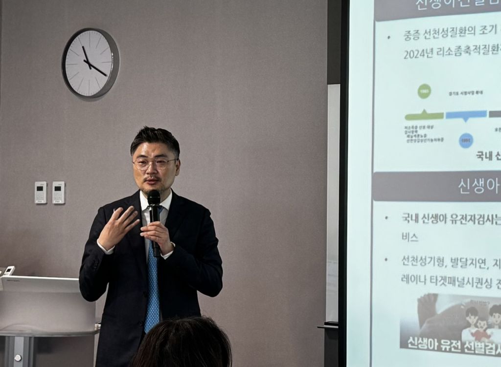 이범희 서울아산병원 소아청소년과 교수가 '전장유전체 기반 한국인 신생아 선별검사 시범연구'에 대해 설명하고 있다. 한국과학기자협회 제공