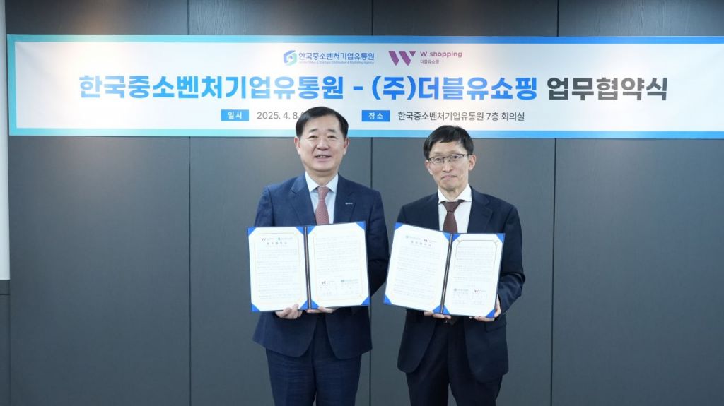 한국중소벤처기업유통원(한유원)이 데이터홈쇼핑 더블유쇼핑과 '중소벤처기업 판로확대 지원 업무협약'을 체결했다고 9일 밝혔다.