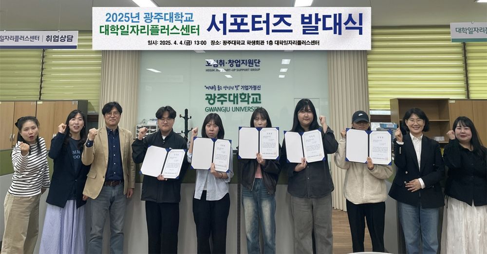 광주대학교(총장 김동진) 대학일자리플러스센터는 최근 청년고용정책 홍보 등을 책임질 2025학년도 서포터즈 발대식을 개최했다고 9일 밝혔다.