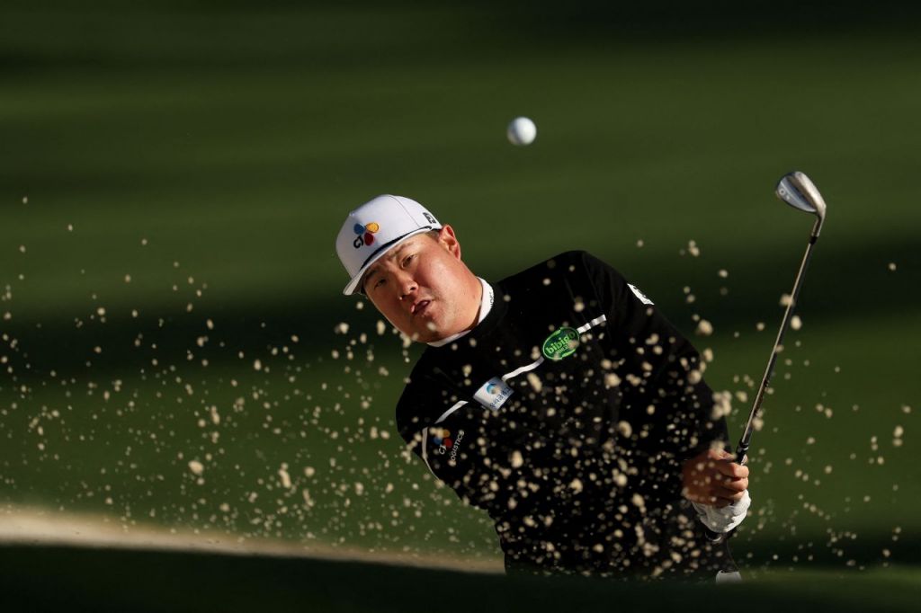 임성재가 마스터스 연습라운드 10번 홀에서 벙커 샷을 하고 있다. 오거스타=AFP연합뉴스