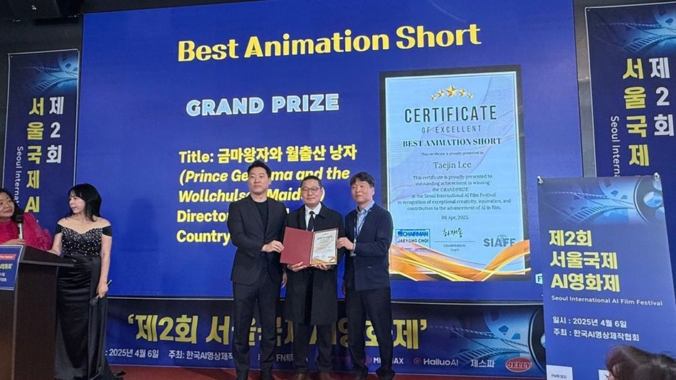 전남 영암군(군수 우승희)의 설화를 바탕으로 제작된 애니메이션 '금마 왕자와 월출산 낭자'가 지난 6일 서울 앙트레블에서 열린 '제2회 서울국제AI영화제'에서 단편 애니메이션(Best Animation Short) 부문 대상을 차지했다.
