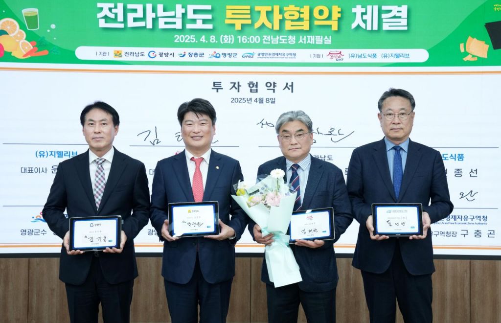 광양만권경제자유구역청(청장 구충곤)은 지난 8일, 전남도청 서재필실에서 수출용 조미김 생산기업 ㈜김이가(대표 김태한)와 200억 원 규모의 투자협약을 체결했다.