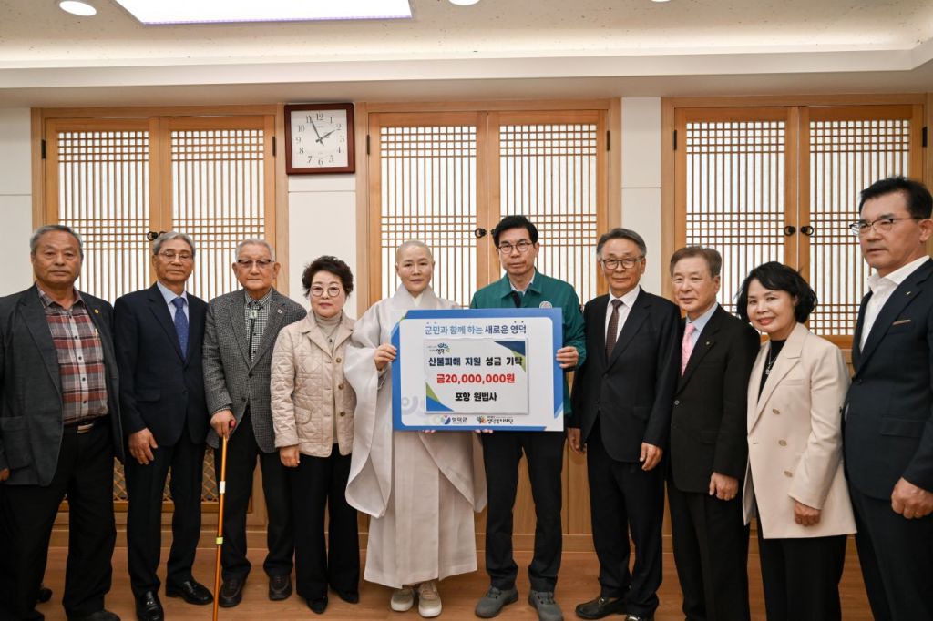8일 현재 영덕군에 접수된 산불 피해복구 성금은 일반기부 598건 22억 1354만여원, 고향사랑기부 1만 4324건 15억 3972만여원으로, 총 1만 4857건에 37억 5326만여원에 달한다.