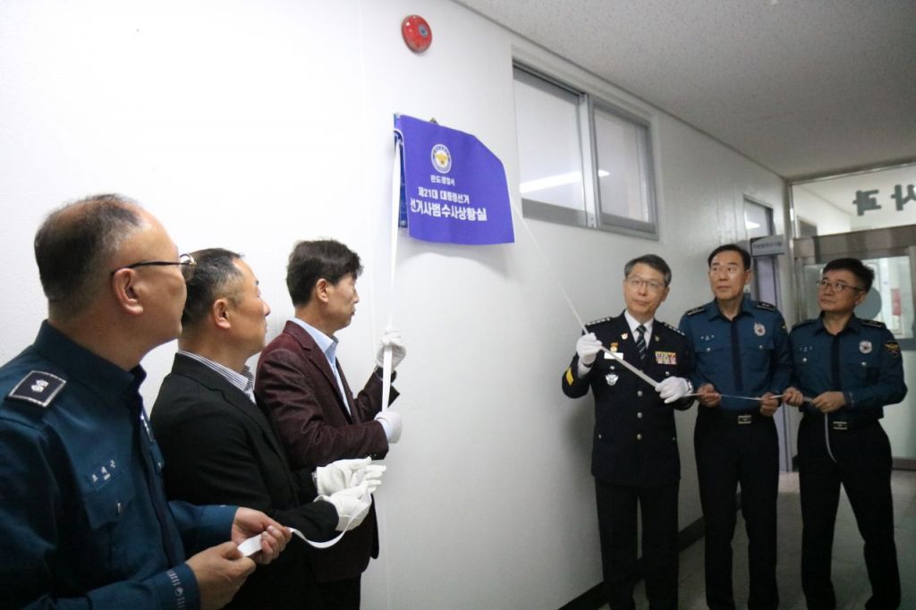 완도경찰서는 제21대 대통령 선거를 앞두고 선거범죄 예방 및 단속을 위한 '선거사범 수사상황실'을 설치하고, 9일 현판식을 가졌다고 밝혔다.