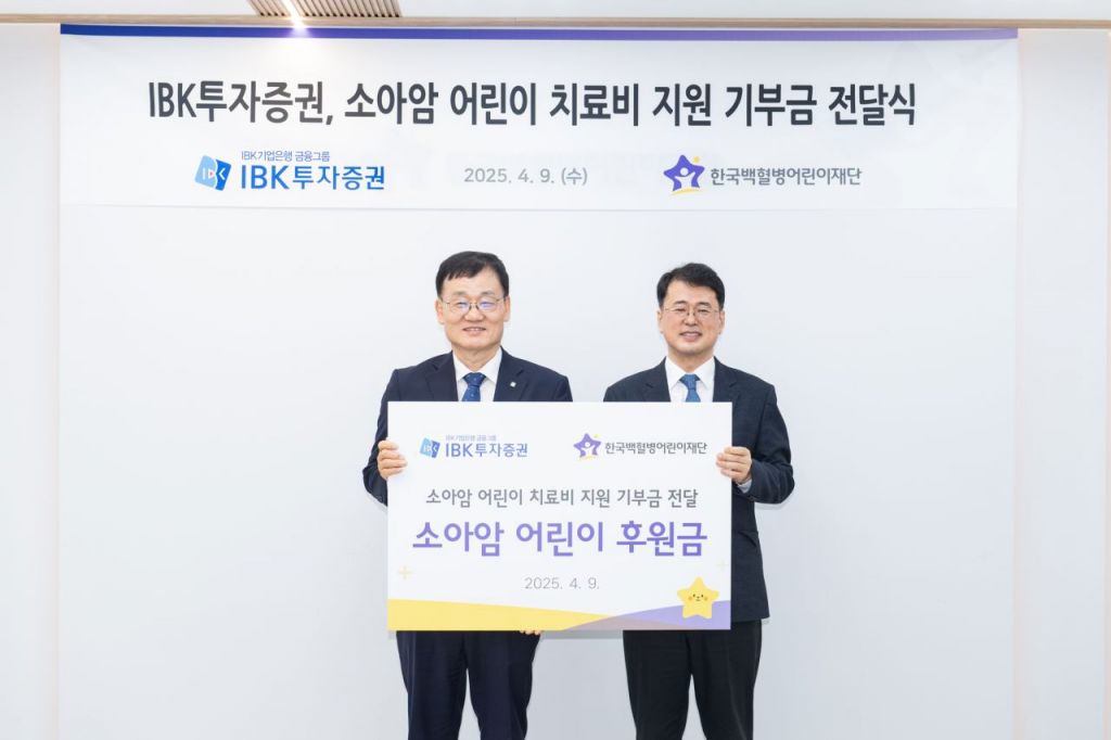IBK투자증권은 9일 서울 성북구 한국백혈병어린이재단을 찾아 소아암 환아 치료비를 후원했다고 밝혔다.