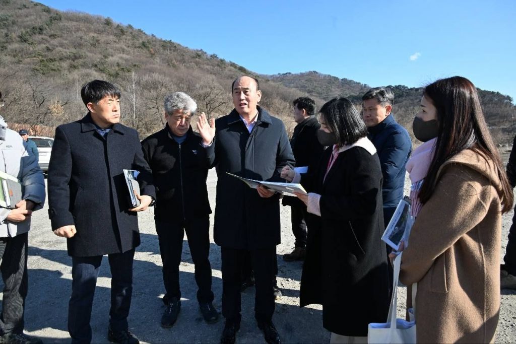 박형덕 시장이 파크골프장 조성 대상지 현장을 방문하고 있다. 동두천시 제공