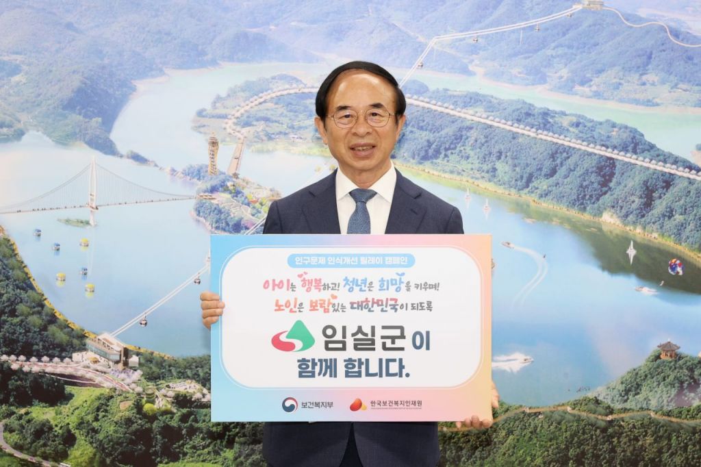 심민 전북 임실군수가 9일 대한민국 전역의 저출산·고령화에 따른 인구 감소의 심각성을 알리기 위해 인구문제 인식 개선 릴레이 캠페인에 동참했다.