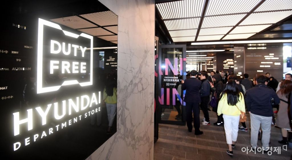 1일 전면 개장한 서울 강남구 현대백화점면세점 무역센터점에 이용객들이 입장하고 있다./김현민 기자 kimhyun81@