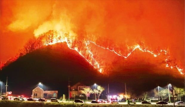 지난 3월27일 오후 경남 산청군 시천면 야산에서 야간 산불이 확산하고 있다. 연합뉴스