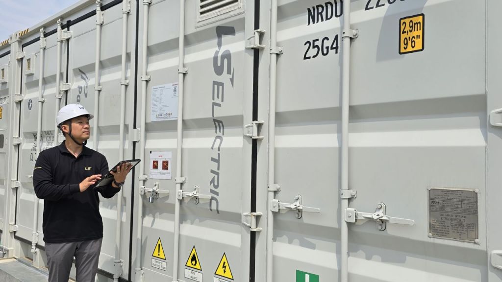 LS일렉트릭 관계자가 일본 홋카이도 지역에 설치된 계통연계 ESS를 점검하고 있다. LS일렉트릭 제공