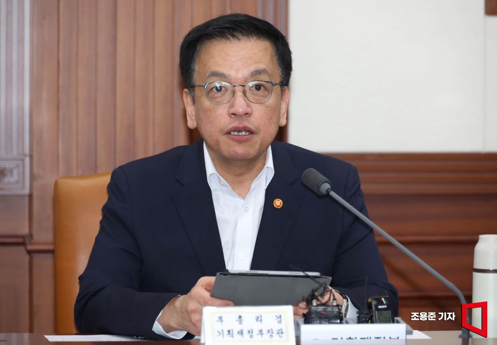 최상목 경제부총리 겸 기획재정부 장관이 11일 서울 종로구 정부서울청사에서 열린 대외경제장관회의에 참석, 미 관세부과 조치에 따른 우리 거시경제 영향 등에 대해 발언하고 있다.