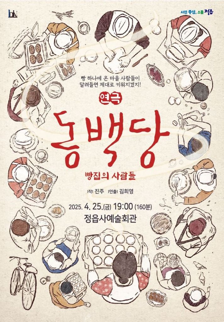 전북 정읍시가 오는 25일 오후 7시 정읍사예술회관에서 '동백당; 빵집의 사람들' 연극을 선보인다.