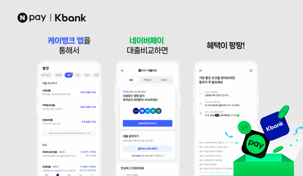 네이버페이는 케이뱅크 애플리케이션에서 '네이버페이 대출비교' 서비스를 제공한다고 11일 밝혔다.