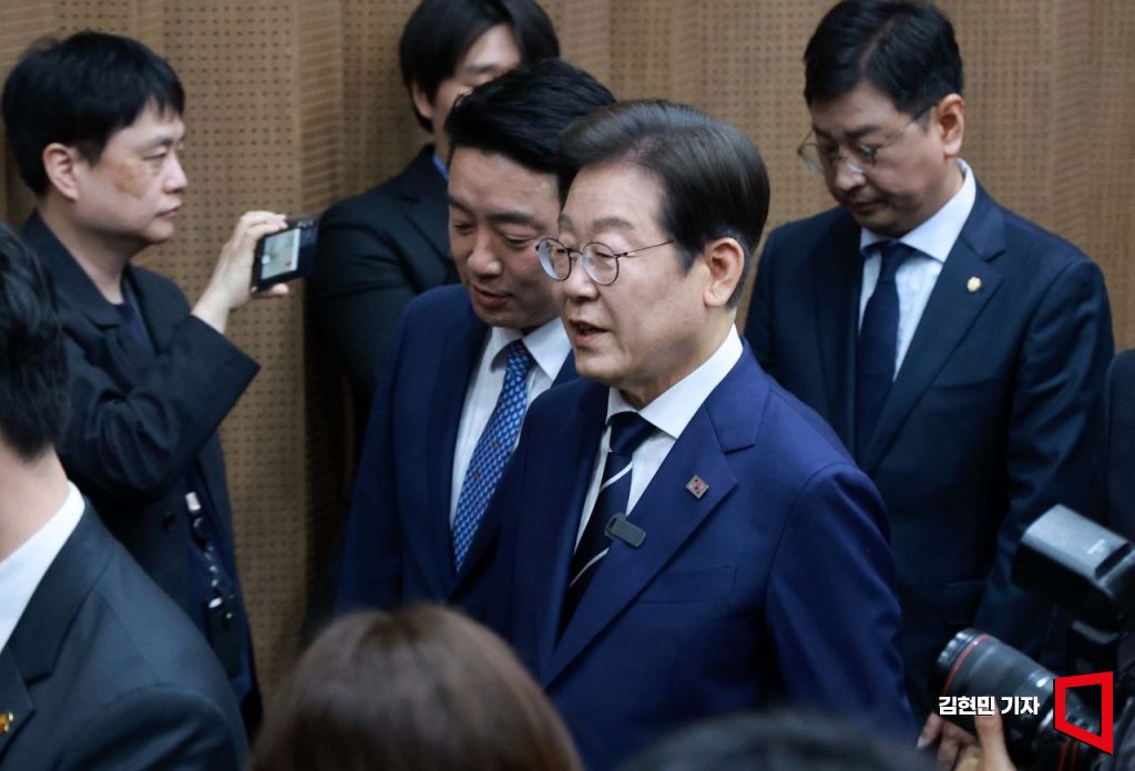 이재명 전 더불어민주당 대표가 11일 국회 소통관에서 집권 청사진 등을 소개하는 '비전 선포식 및 캠프 일정 발표'를 마치고 회견장을 나서고 있다. 2025.4.11 김현민 기자