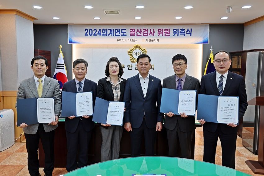 전남 무안군의회는 11일 오전 2024회계연도 결산검사위원 위촉식을 열고 위원들에게 위촉장을 수여했다.