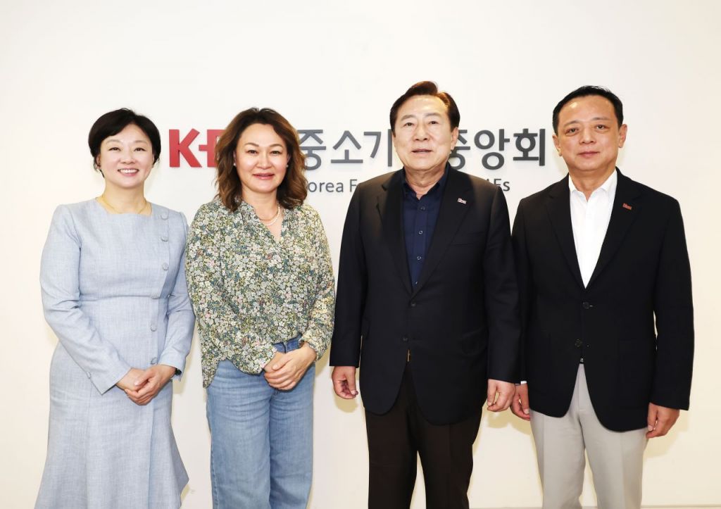 왼쪽 2번째부터 제니 리 미국 가든그로브시 인사국장과 김기문 중기중앙회장이 기념촬영을 하고 있다. 중기중앙회