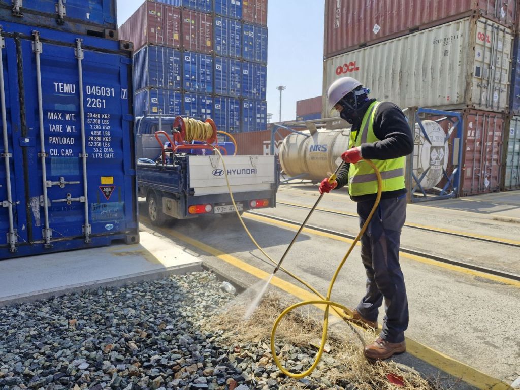 부산항만공사(BPA, 사장 송상근)와 농림축산검역본부(영남지역본부장 송태복)는 지난 9일부터 10일까지 이틀간 부산항 신감만부두 야적장에서 바닷물 살포를 통한 외래병해충 방제 시범사업을 공동으로 실시했다.