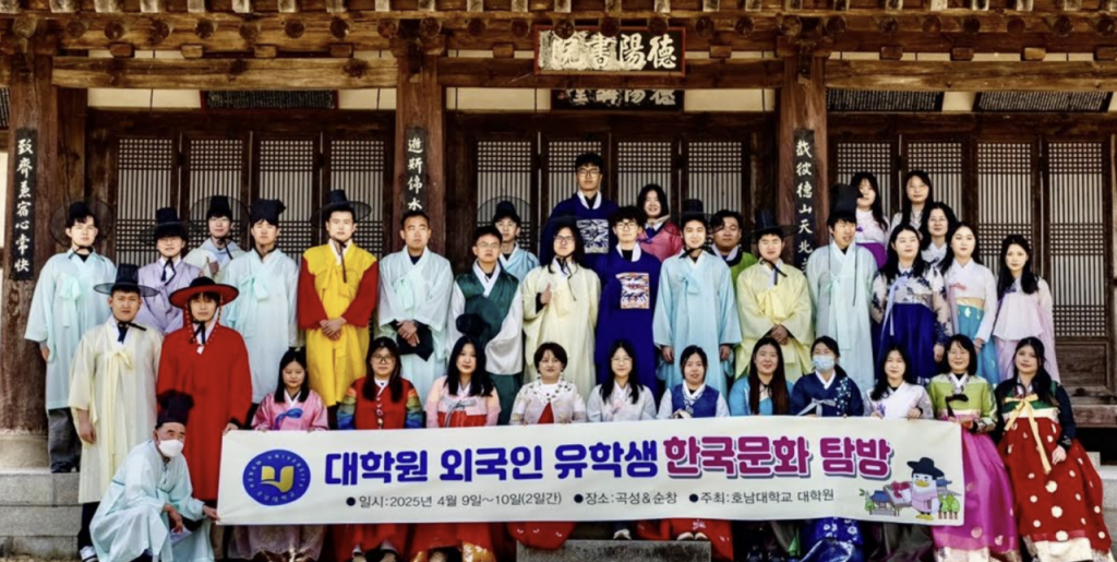 지난 9일 유학생들은 곡성 덕양서원을 방문해 한국 전통 교육기관의 역사와 철학을 배우고, 문화재 환경보호 특강에서는 문화유산을 보호하고 계승하는 한국 사회의 가치관에 대해 이해하는 시간을 가졌다. 이어 인기 드라마 '오징어 게임'을 모티브로 한 체험활동과 한복 착용 체험을 통해 전통과 현대문화가 어우러진 다채로운 한국 문화를 직접 경험했다.
