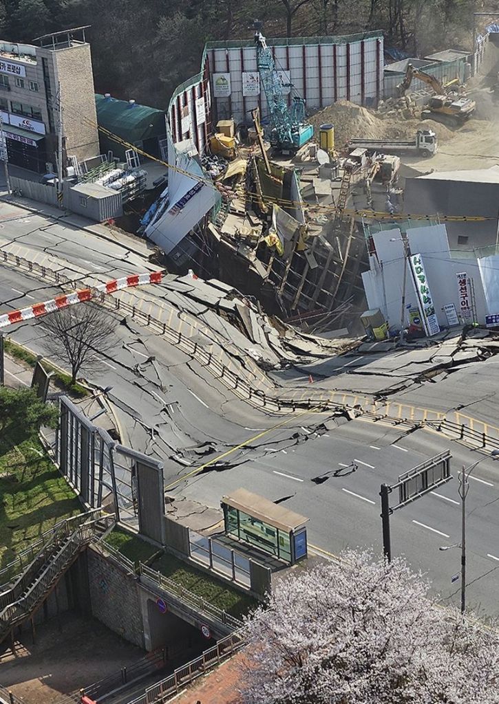 지하 공간이 붕괴하면서 지상 도로와 인근 상가 시설물 일부도 무너졌으며, 아직 추가 인명피해 등은 확인되지 않았다.