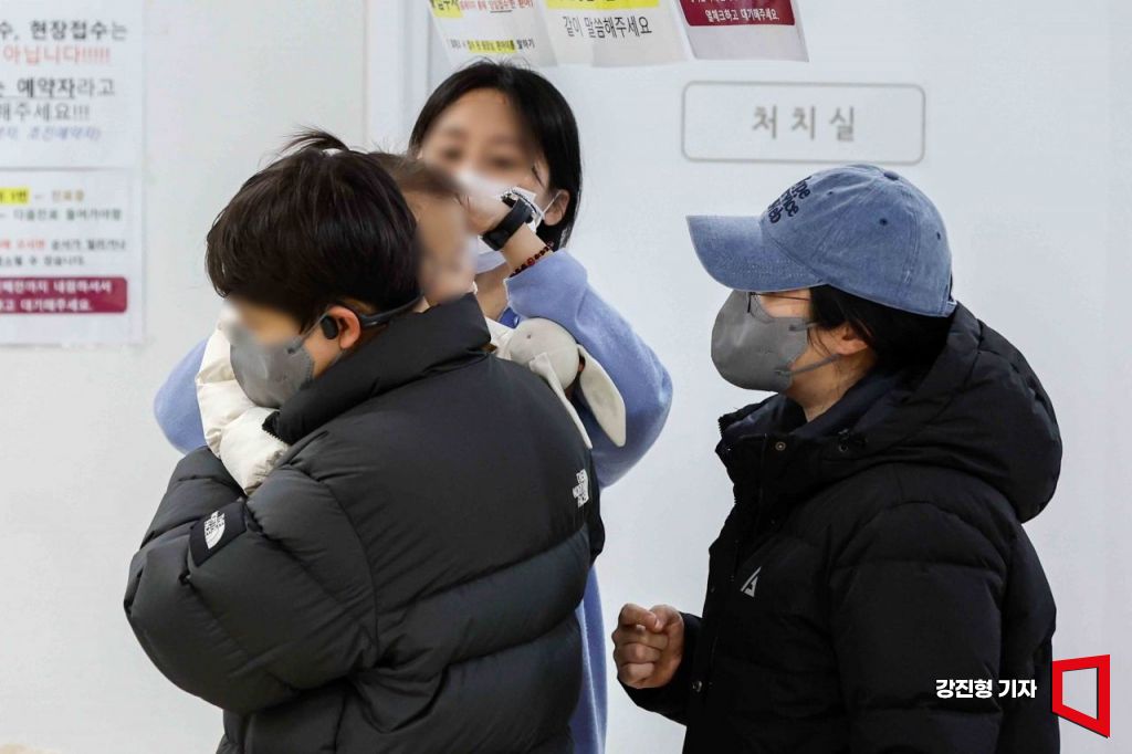 서울 성북구 어린이 전문 병원을 찾은 어린이가 체온 검사를 받고 있다.