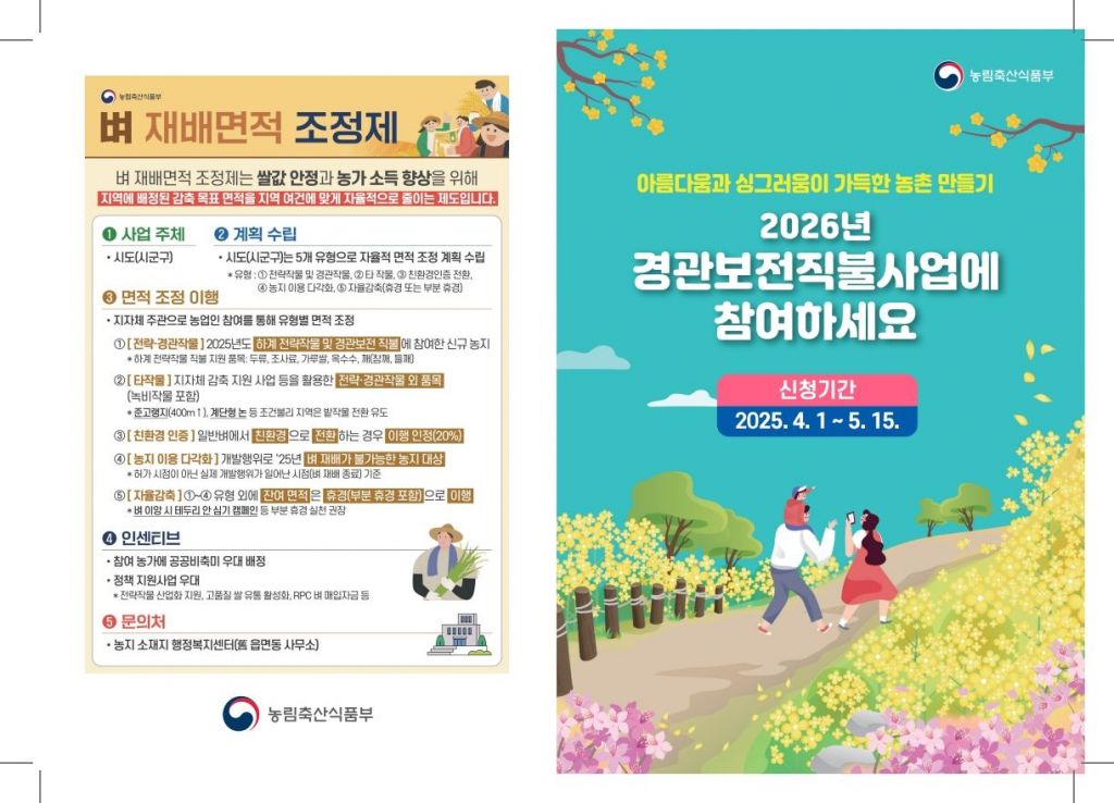 전라남도는 경관보전직불제의 2026년 사업 신청을 오는 5월 15일까지 한 달 보름여 간 접수한다.