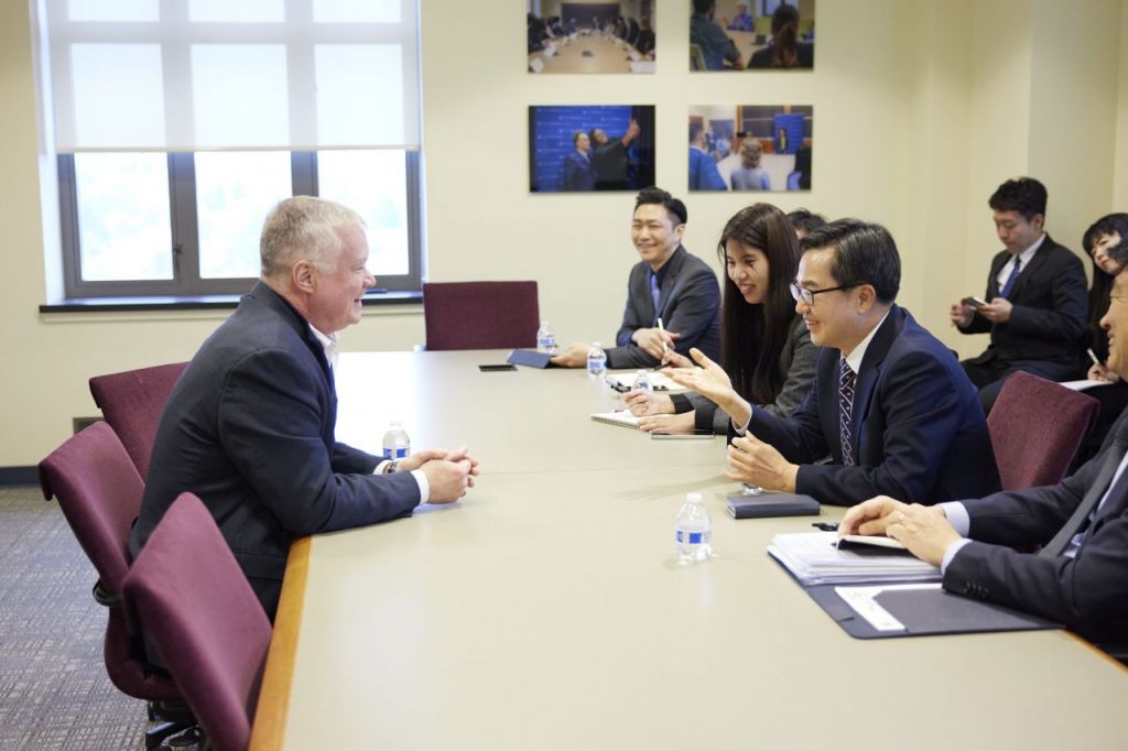 김동연 경기도지사가 10일(현지시간) 미국 미시간대 포드스쿨에서 스티븐 비건 前 국무부 부장관과 면담하고 있다. 경기도 제공