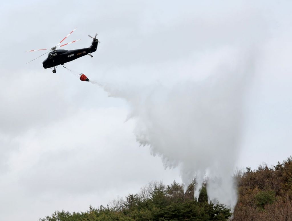 지난달 울산 울주군 온양읍에서 헬기가 진화 작업을 하고 있다. 연합뉴스
