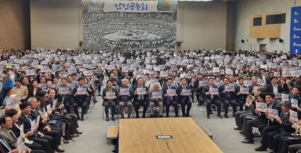 13일 오후 3시 광주 서구 김대중컨벤션센터 4층 컨벤션홀에서 열린 '포럼 만민공동회'에는 정청래 국회 법제사법위원장과 정규재 한국경제 주필, 정진욱, 양부남, 민형배, 안도걸, 조인철, 박균택, 전진숙 국회의원, 강기정 광주시장, 시민 등 1만여 명이 참여했다.