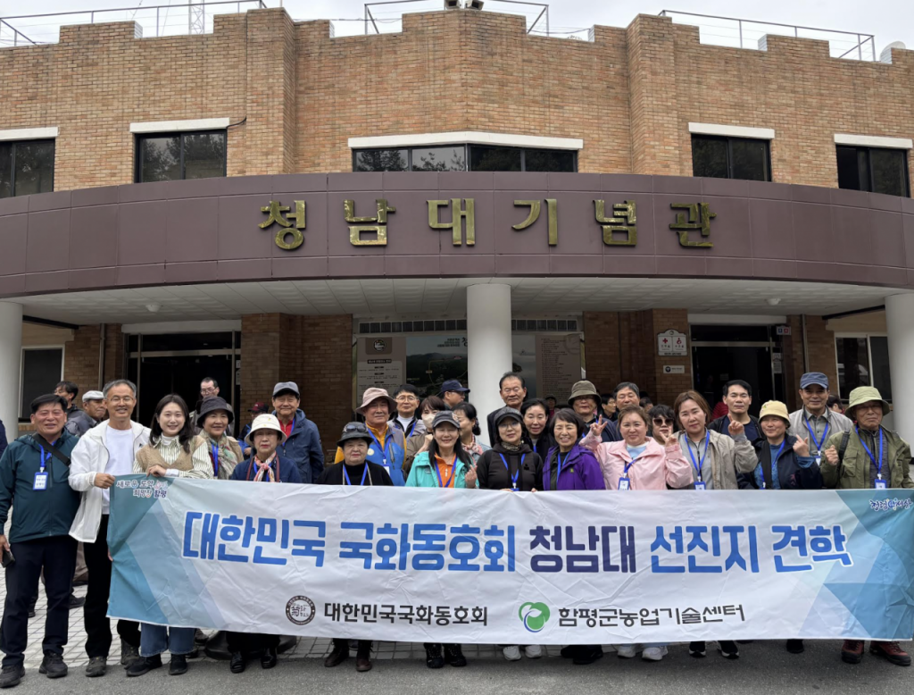 지난 12일 함평군 대한민국 국화동호회원 34명이 충북 청주시 청남대를 방문해 조경 연출 및 전시기법을 배웠다.