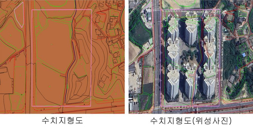 '수치지형도'란 항공촬영과 지상 측량을 바탕으로 지형지물과 지명 등의 위치와 형상을 데이터로 구조화해 일정한 축척으로 전산화한 지도를 말한다.