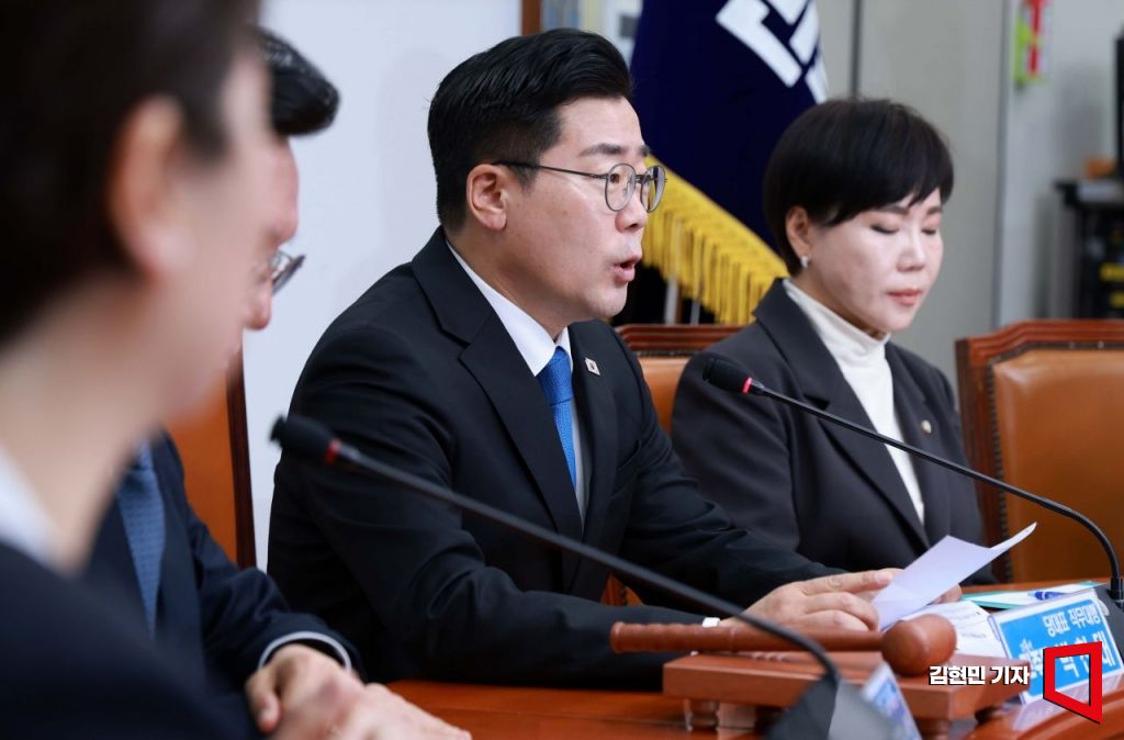 박찬대 더불어민주당 당대표 직무대행 겸 원내대표가 14일 국회에서 열린 최고위원회의에서 발언하고 있다.